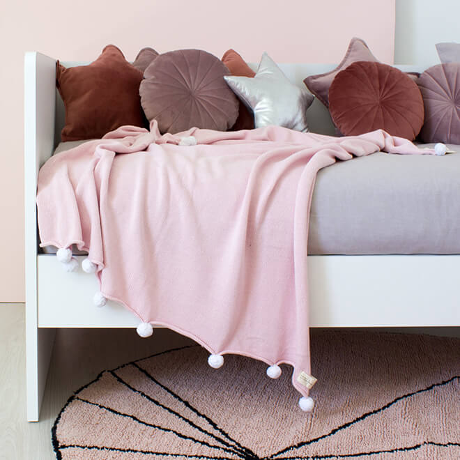 Плед с помпонами розовый